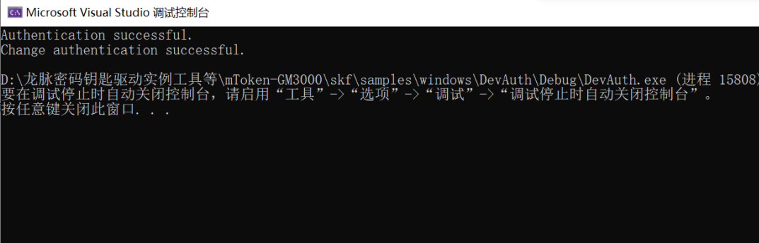 三、加分项:运行“龙脉密码钥匙驱动实例工具等\mToken-GM3000\skf\samples\windows”中例程,提交运行结果截图