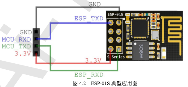 与STM32 C8T6的连接方式如下:(图源:安信可ESP8266开发手册)