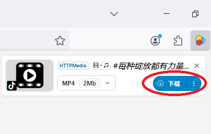 Video DownloadHelper嗅探到视频资源后,其图标会由灰色变为彩色,点击,会弹出如下图所示的浮动窗,点击『下载』按钮即可下载视频,速度杠杠滴。