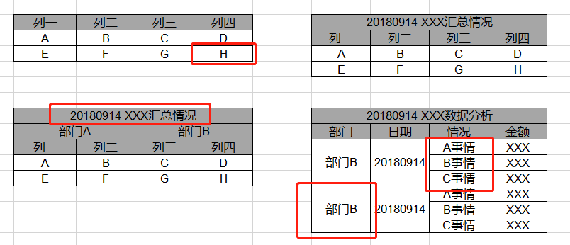 根据常用的Excel模板,把单元格的情况,分为以下几种情况: