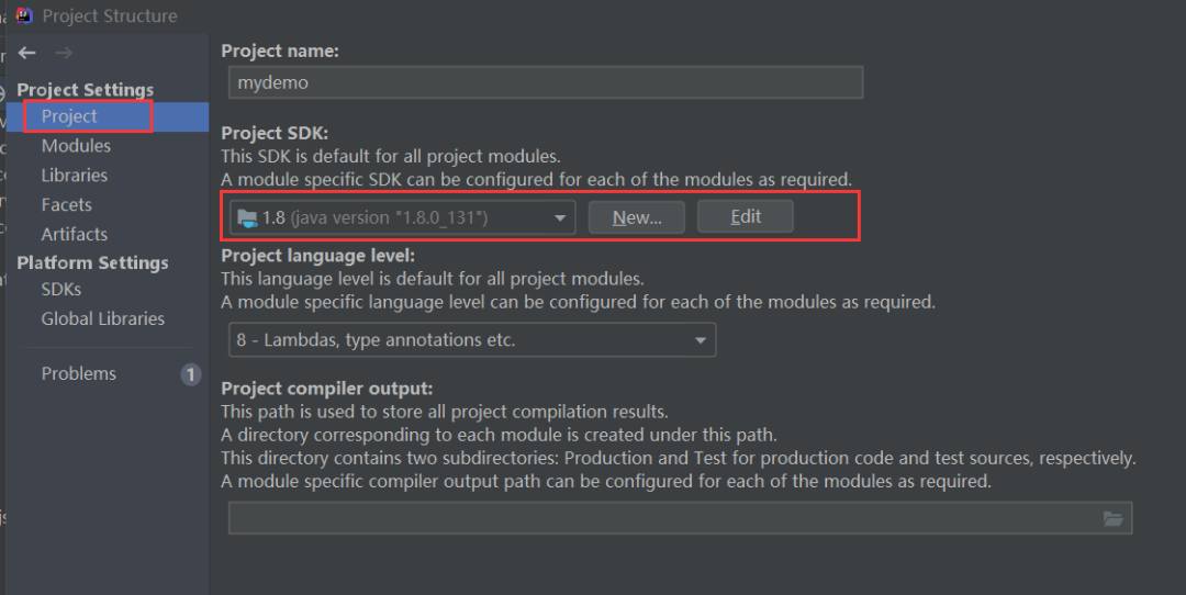 JDK指定:[File]-->[Project Structure]-->[Project Setting]-->[Project]