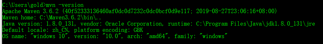 上面的环境变量设置完后,通过DOS窗口中输入命令:mvn -version 进行验证是否成功,如下: