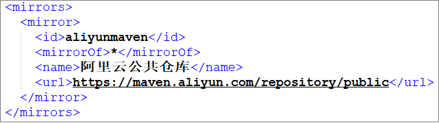 由于直接冲Maven的中央仓库中自动下载jar包较慢,一般在Maven的配置文件中,增加阿里云的公共仓库配置,这样会显著加快jar包的下载速度,如下: