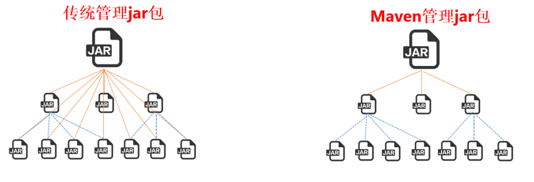 jar包依赖、jar包依赖传递的概念如下图,清楚明了,都不用多做解释: