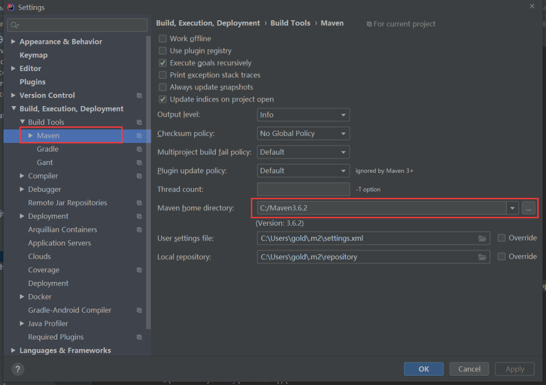其安装不用多说,一路Next就行,安装完后,在其配置里面指定一下JDK、Maven的位置就行了,如下图:Maven指定:[File]-->[setting]-->[Build,Excution,Deployment]-->[Build Tools]-->[Maven]
