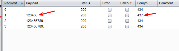 5、找到返回值不同的对应的即为密码: