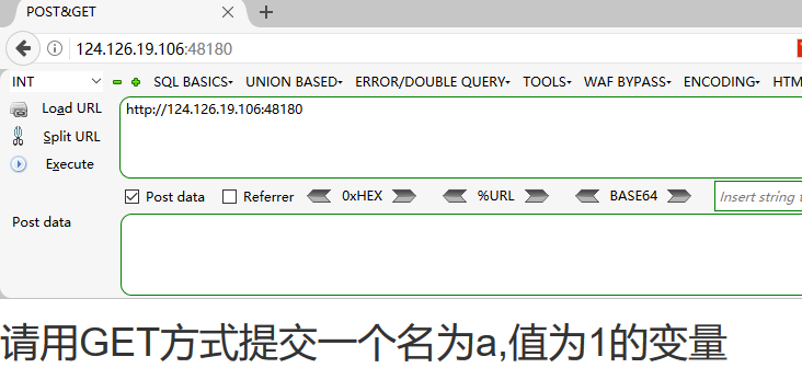 1、打开火狐,下载hackbar,再将题目场景输入(输入框下面的大框就是hackbar):