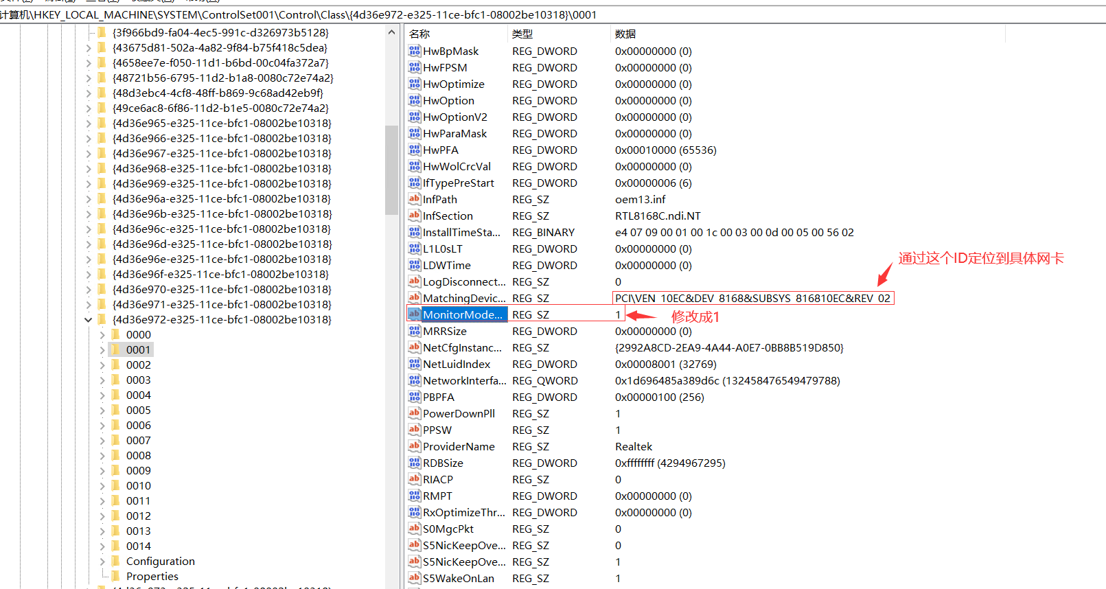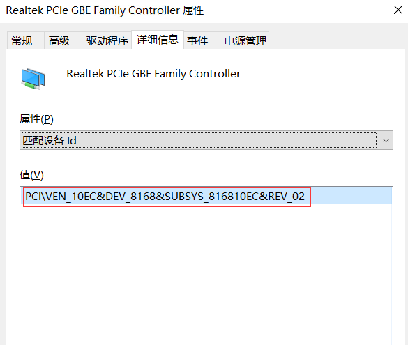 网卡上右键--》属性--》配置--》详细信息--》匹配设备Id