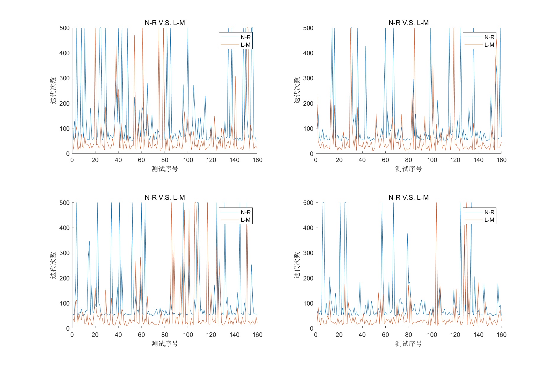 可以明显的看出列文伯格-马夸尔特法收敛速度快于牛顿-拉夫逊法