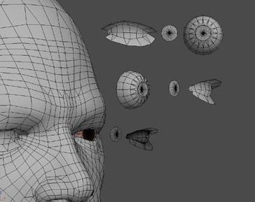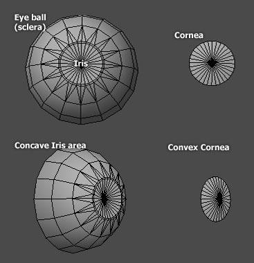 (几何体例子,注意眼球上微妙的向内弯曲和角膜上的向外弯曲)