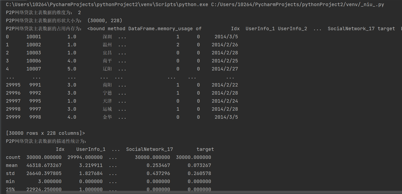二、读取并查看P2P网络贷款数据主表的基本信息(1题10分,共10分)