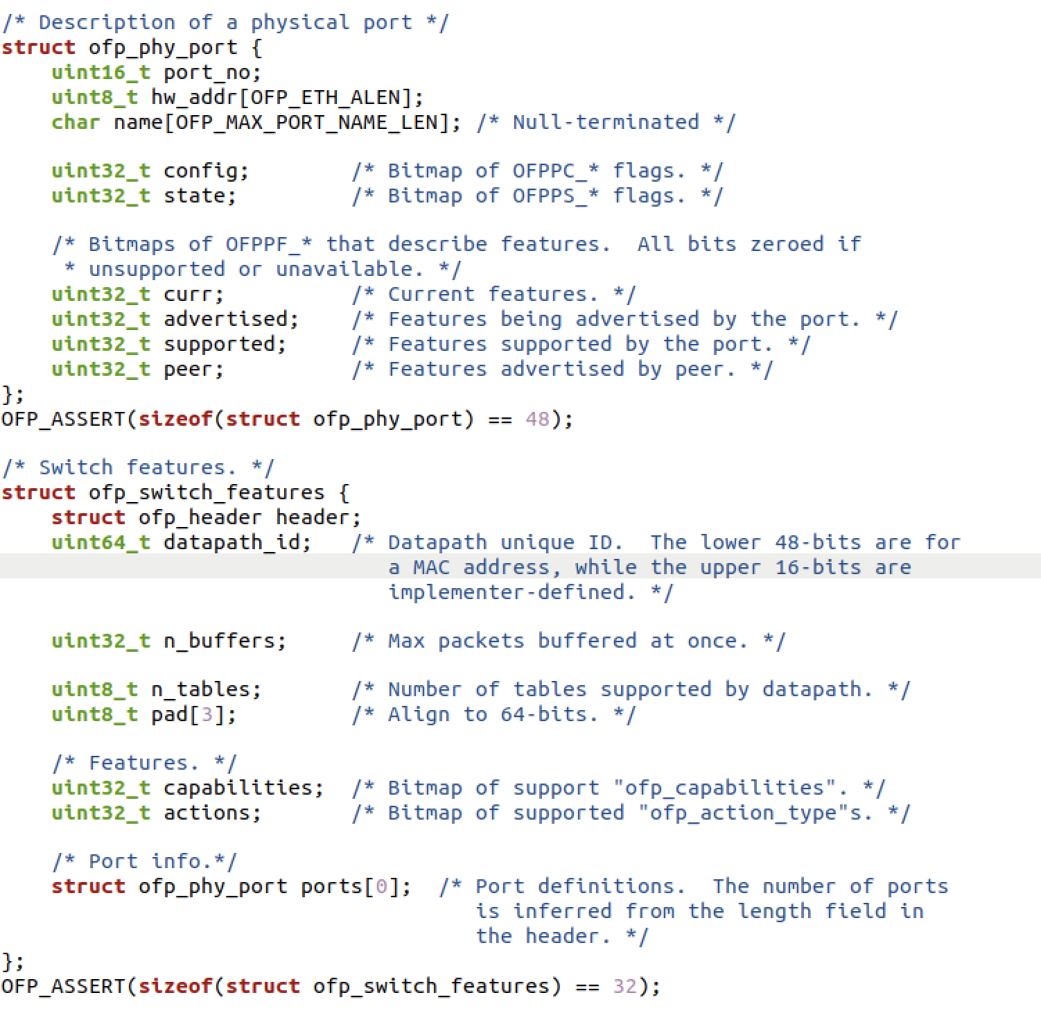 将抓包结果对照OpenFlow源码,了解OpenFlow主要消息类型对应的数据结构定义