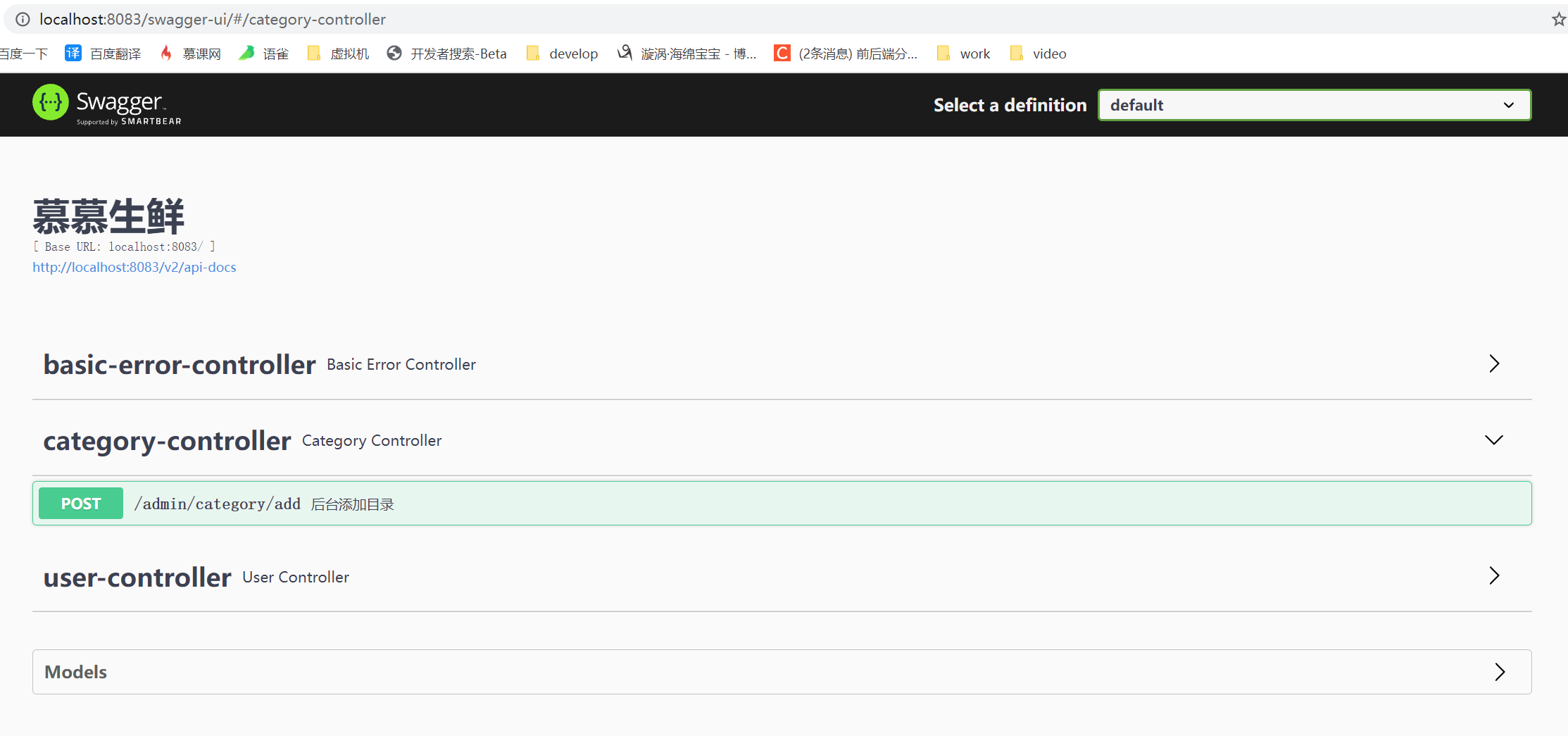 @Configuration @EnableSwagger2 public class SwaggerConfig { // 访问 http://localhost:8083/swagger-ui/ 可以看到API文档 @Bean public Docket api() { return new Docket(DocumentationType.SWAGGER_2) .apiInfo(apiInfo()) .select() /*RequestHandlerselectors配置要扫描接口的方式 basePackage:指定要扫描的包,只有指定包下的接口会生成 .apis(RequestHandlerSelectors.basePackage("com.example.demo.controller")) any():扫描全部,所有的接口都会生成 none():不扫描 withClassAnnotation:扫描类上的注解,多数是一个注解的反射对象 withMethodAnnotation:扫描方法上的注解,用了注解的方法会生成 .apis(RequestHandlerSelectors.withMethodAnnotation(ApiOperation.class))*/ .apis(RequestHandlerSelectors.any()) //只生成符合下面配置的接口地址的接口 //.paths(PathSelectors.ant("/admin/**")) .paths(PathSelectors.any()) .build(); } private ApiInfo apiInfo() { return new ApiInfoBuilder() // 页面标题 .title("慕慕生鲜") //描述 .description("") //版本 .version("") //作者信息 .contact(new Contact("","","")) .build(); } }