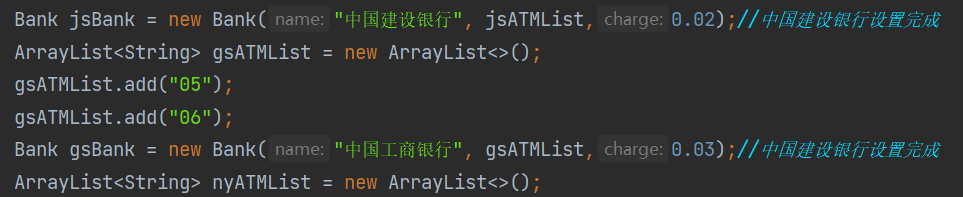 public Bank(String name,ArrayList<String> ATM,double charge){ this.bankname = name; this.AList = ATM; this.charge = charge;//新增税率设置 }