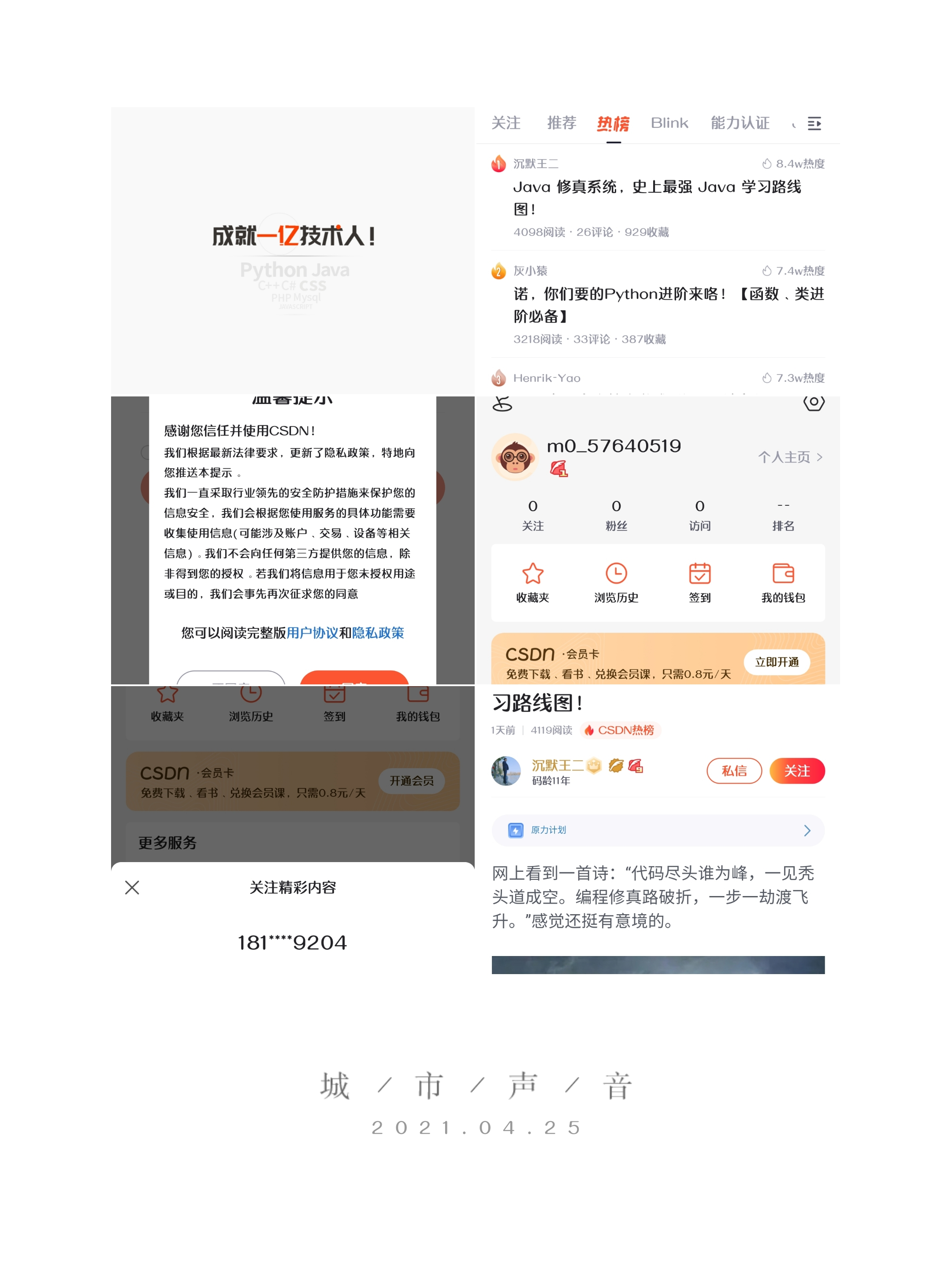 1.1 CSDN官网与app的使用,下载并使用,描述最简单直观的个人第一次上手体验
