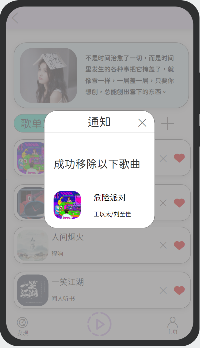 - 通知用户删除歌单中的某个歌曲