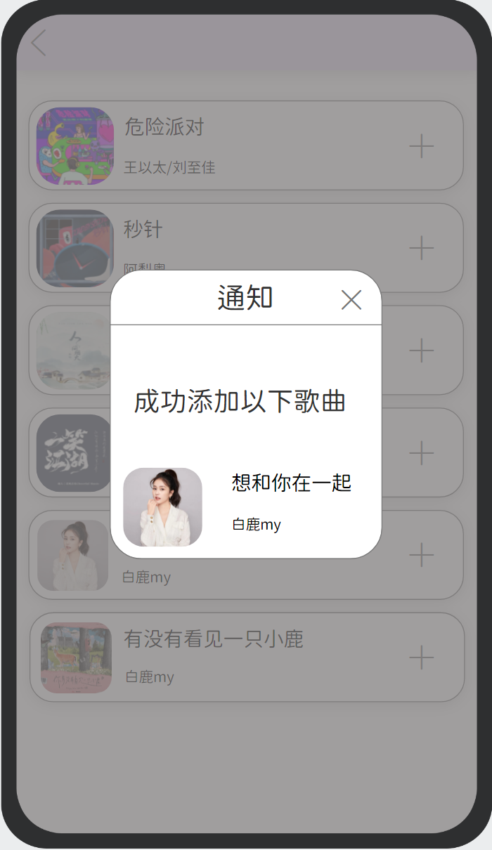 - 通知添加歌曲成功的弹窗