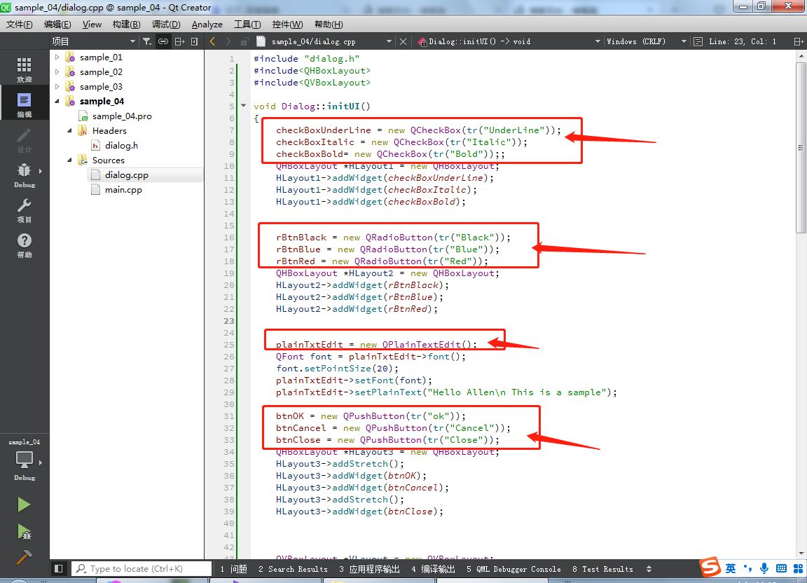 plainTxtEdit->setPlainText("Hello Allen\n This is a sample");