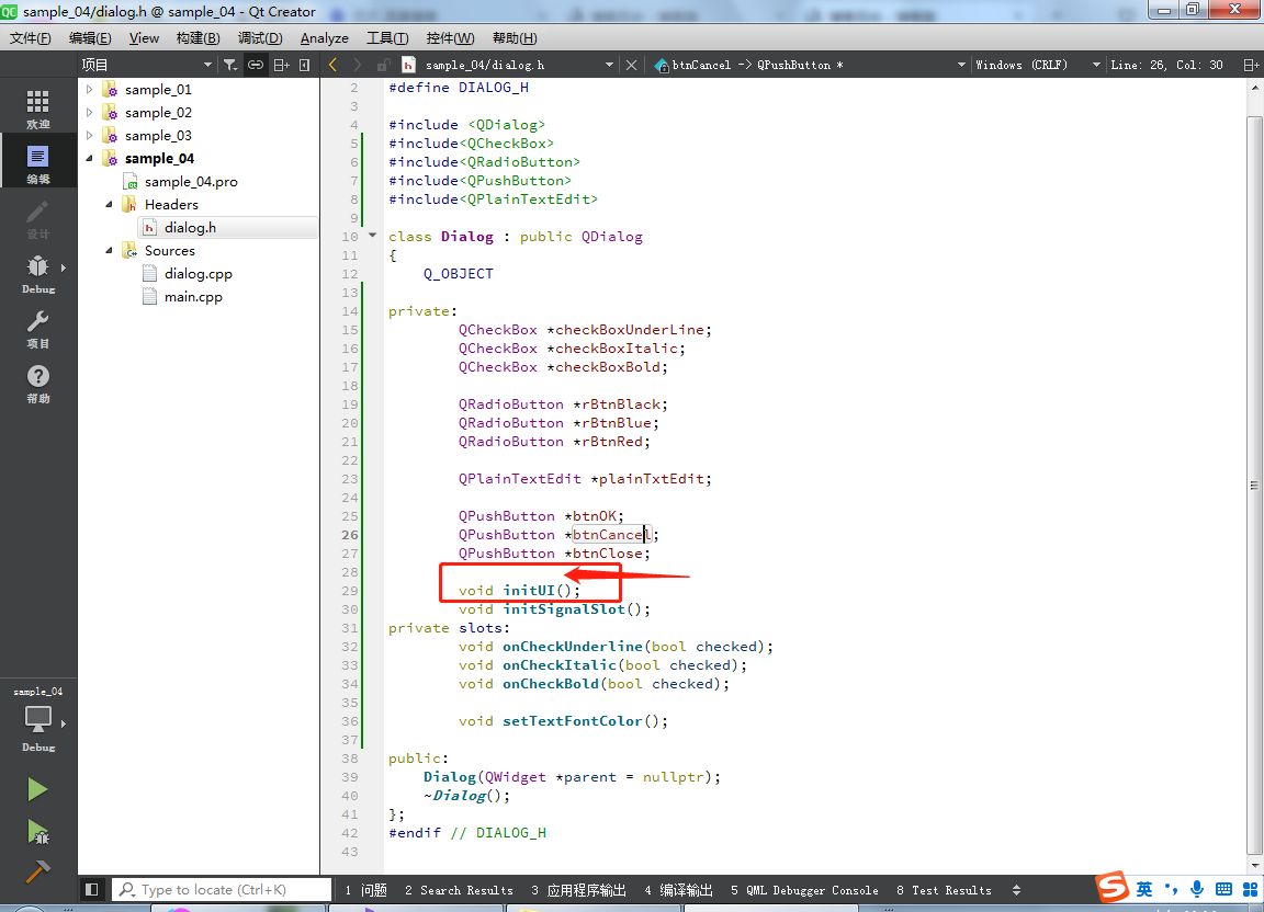 二:头文件中声明 控件 声明初始化UI界面的函数