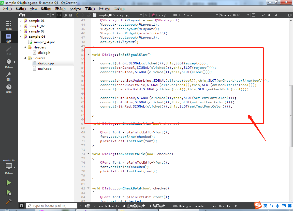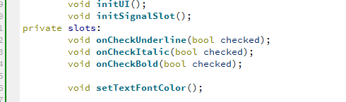 connect(checkBoxUnderLine,SIGNAL(clicked(bool)),this,SLOT(onCheckUnderline(bool)));