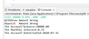 题目集三 7-1是创建帐户Account类,刚发题目及的时候,我还没有学到这儿类,对于这个方面还不是很了解,什么都不知道,在别人都拿了好多分的时候自己还是0分,我就开始自己上网课,自己学着方面的内容,当我觉得自己学的差不多的时候,我就开始做这道题了,在处理日期是引用了一个Java中LocalDate类,第一次提交的过程中总有两个点答案错误,反复检查算法并没有错误,最后原来是我存钱和取钱时错误是输出结果相同,写了两个WithDraw Amount Wrong,但是随着我对类的理解,我并没有用构造器,类里面的方法都定义了参数,这样的话定义类就没有什莫意义了,后来又经过自己的改进,完成了自己想要的模样.