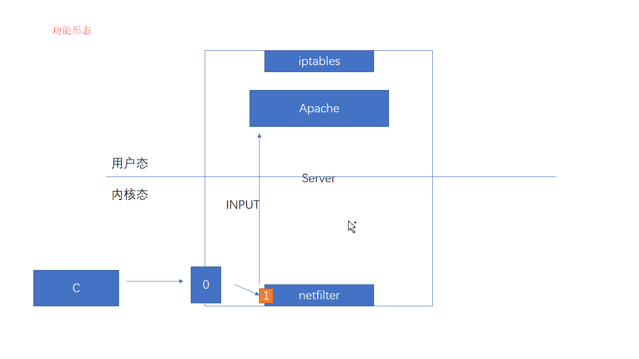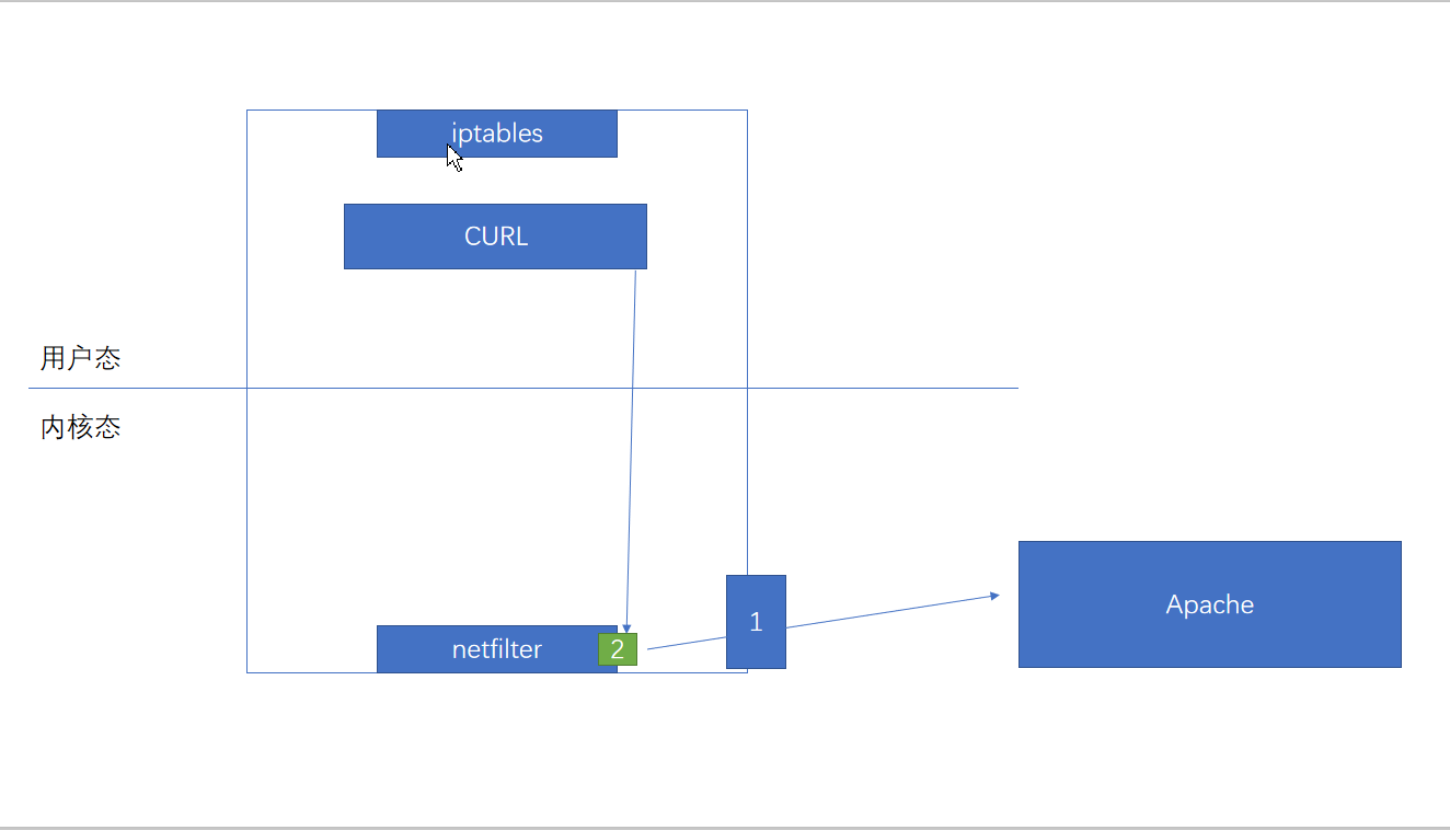 用户态:iptables netfilter/iptables(用户空间的管理工具)
