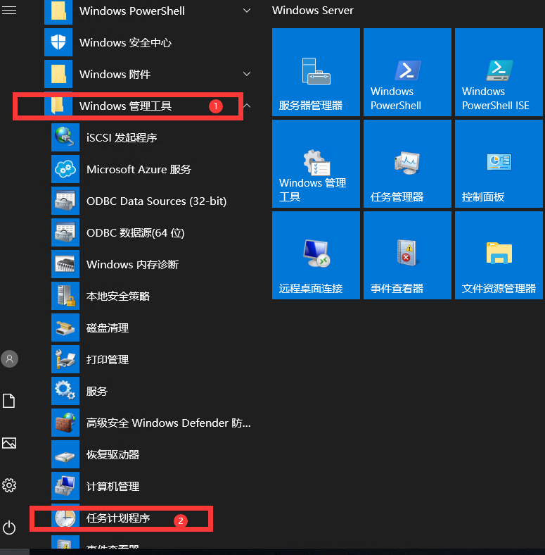 1、从 【开始】 菜单中 打开【任务计划程序】
