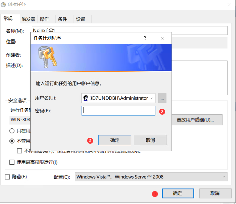 3、以上操作完成后创建任务串口点击 确定 按钮,需要输入服务器的管理员密码