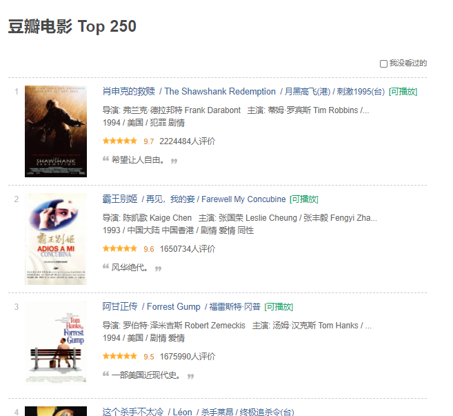 关于对豆瓣内容的爬取,首先可以打开网址https://movie.douban.com/top250如下: