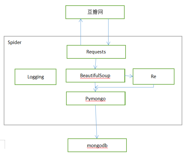 re模块对BeautifulSoup传过来的信息进行匹配处理,最后传给mongodb;
