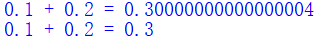 ans1 = 0.1 + 0.2 print(f'0.1 + 0.2 = {ans1}') import decimal ans2 = decimal.Decimal('0.1') + decimal.Decimal('0.2') print(f'0.1 + 0.2 = {ans2}')