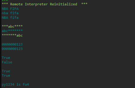 x = 'nba FIFA' print(x.upper()) print(x.lower()) print(x.swapcase()) print() x = 'abc' print(x.center(10, '*')) print(x.ljust(10, '*')) print(x.rjust(10, '*')) print() x = '123' print(x.zfill(10)) x = 123 print(str(x).zfill(10)) print() x = 'phone_number' print(x.isidentifier()) x = '222test' print(x.isidentifier()) print() x = ' ' print(x.isspace()) x = '\n' print(x.isspace()) print() x = 'python is fun' table = x.maketrans('thon', '1234') print(x.translate(table))