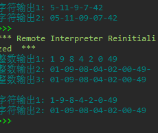 x = [5, 11, 9, 7, 42] print('整数输出1: ', end = '') i = 0 while i < len(x): print(x[i], end = ' ') i += 1 print('\n整数输出2: ', end = '') i = 0 while i < len(x): print(f'{x[i]:02d}', end = '-') i += 1 print('\n整数输出3: ', end = '') i = 0 while i < len(x) - 1: print(f'{x[i]:02d}', end = '-') i += 1 print(f'{x[-1]:02d}') print('\n字符输出1: ', end = '') y1 = [] i = 0 while i < len(x): y1.append(str(x[i])) i += 1 print('-'.join(y1)) print('字符输出2: ', end = '') y2 = [] i = 0 while i < len(x): y2.append( str(x[i]).zfill(2) ) i += 1 print('-'.join(y2))