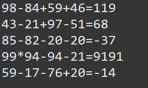 (1)随机产生加减乘除的练习题,数字在100以内,
