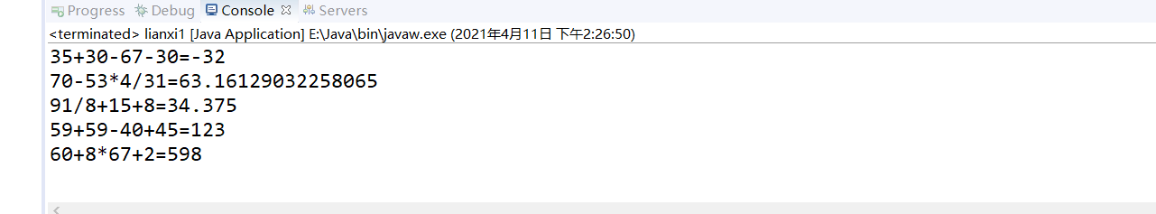 3)得到式子并进行计算,输出到控制台