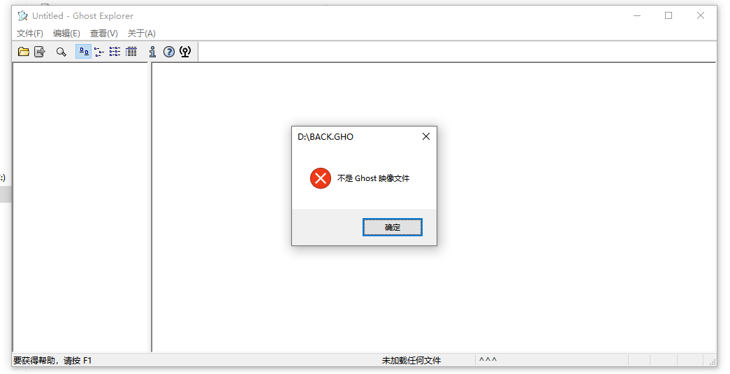 公司取号机,配置比较麻烦,年代比较久远,害怕硬盘坏掉,所以临时想到将整个硬盘内容ghost到.gho文件中,使用一键GHOST硬盘版,按照软件操作步骤,制作好gho文件后,使用软件自带打开gho文件,想查看下备份内容,结果出现如下提示:
