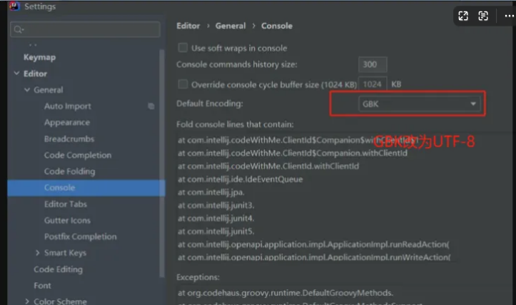 idea file-----setting----选择点击Editor—>选择点击General---->选择点击console
