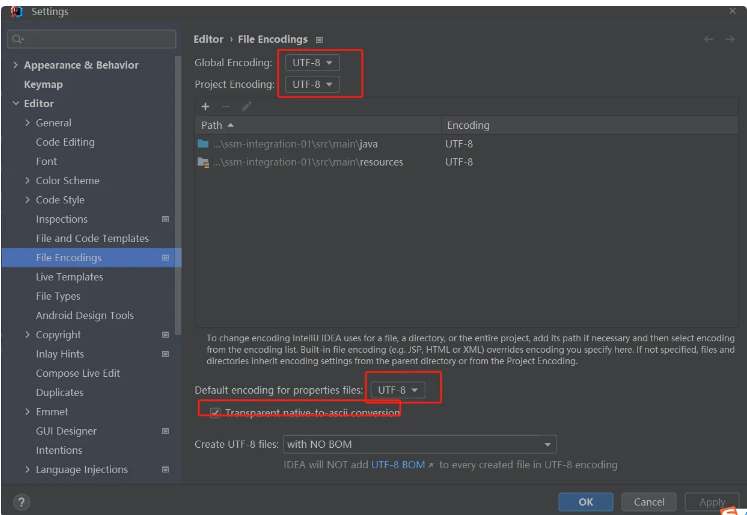 idea file-----setting----选择点击Editor----File Encodings