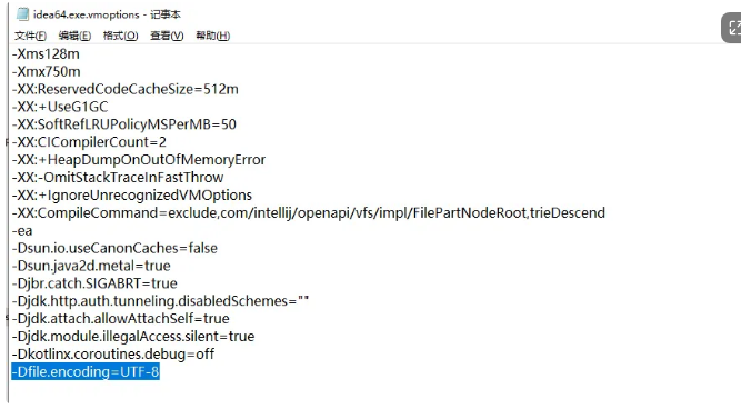 在你的idea安装目录下找到bin文件夹,找到idea64.exe.vmoptions文件