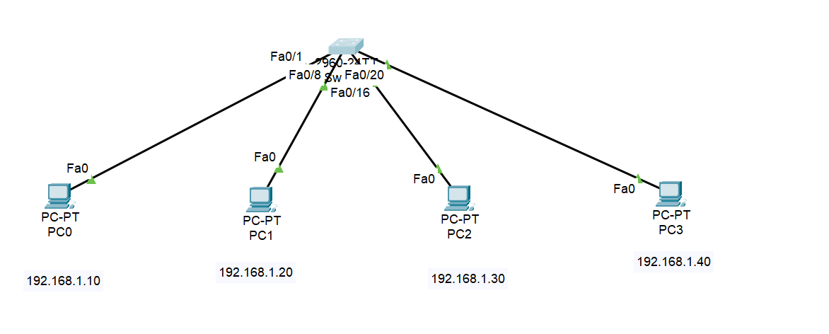 pc1:f0/8--------pc2:f0/16---------pc3:f0/20