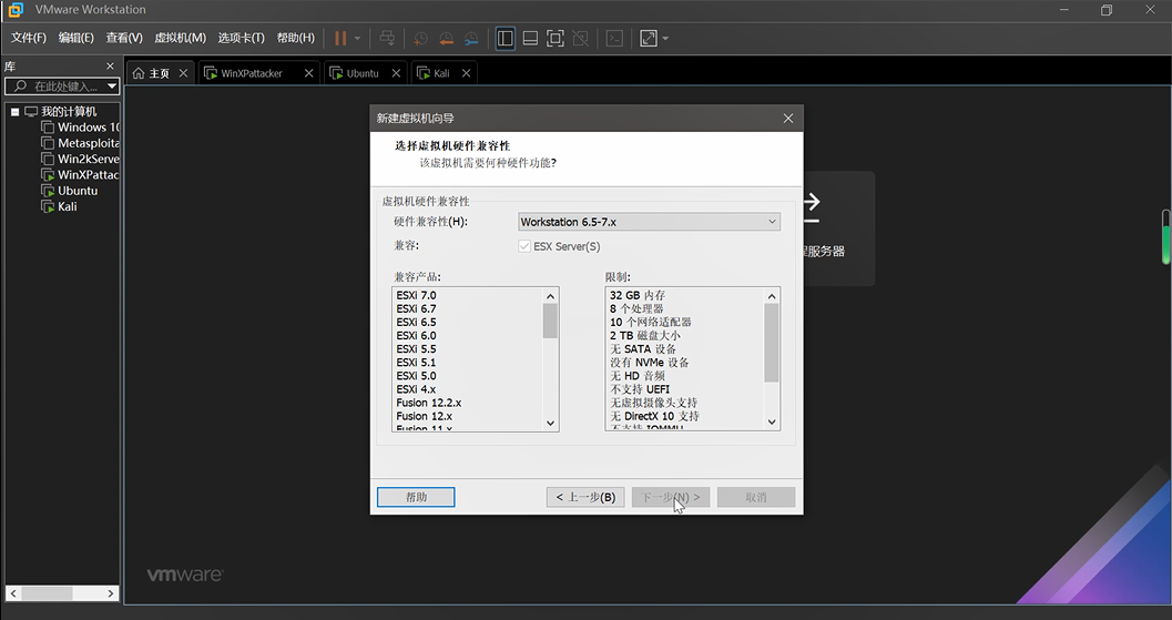 先新建虚拟机,再导入文件。注意在新建虚拟机时,因为我们蜜罐版本比较旧,在硬件兼容性选择一个比较低的版本