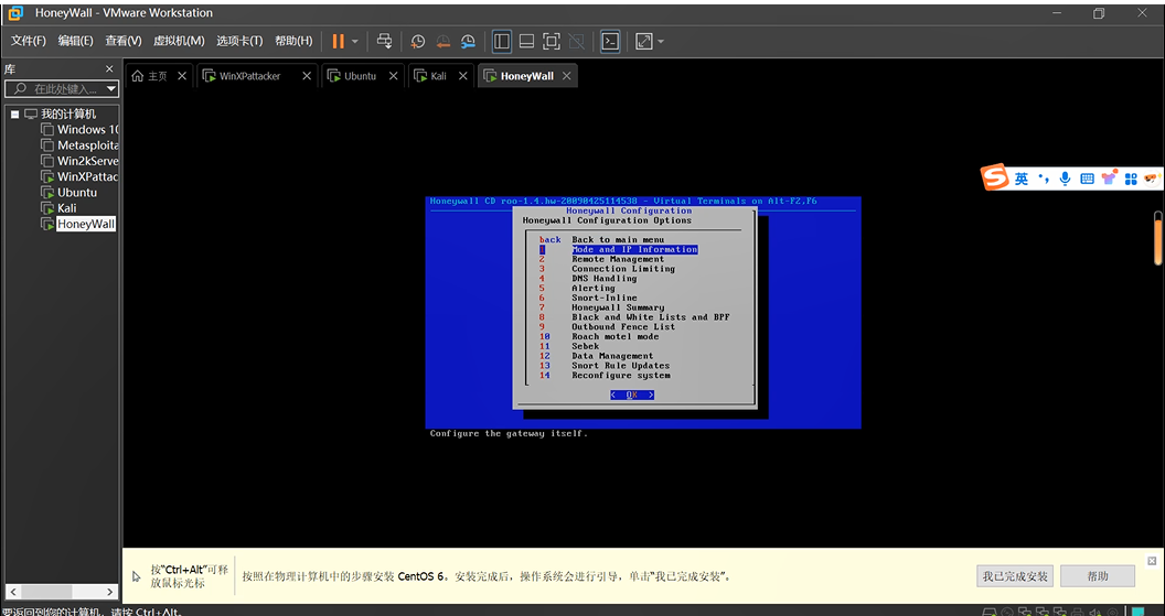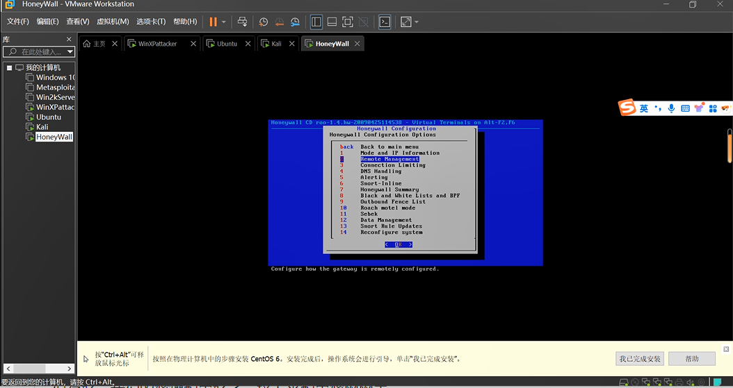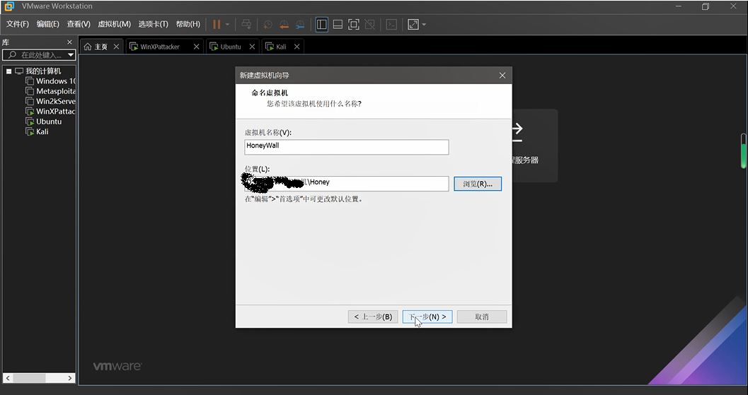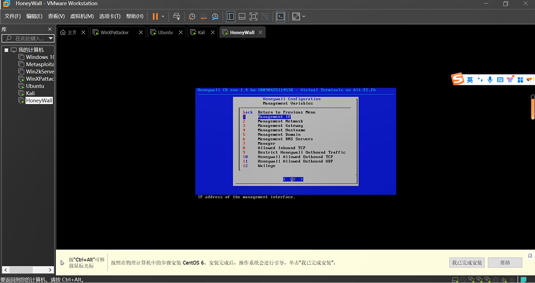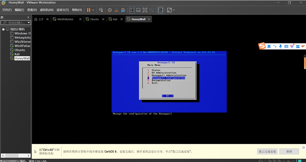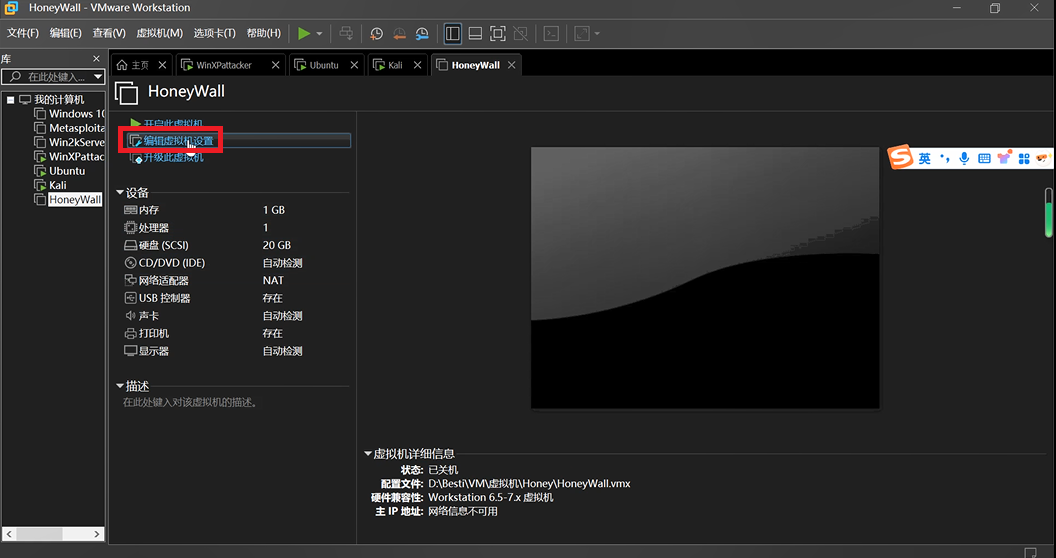 为了方便,我们直接把虚拟机命名为HoneyWall,保存好