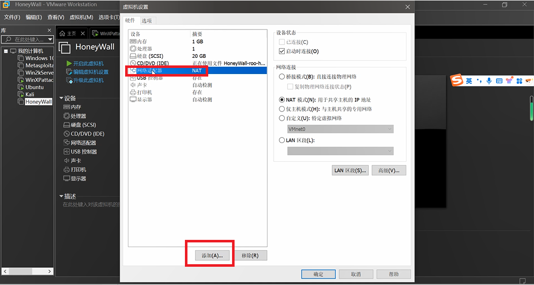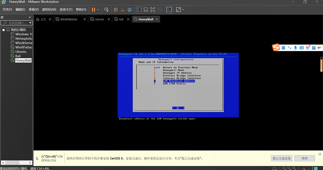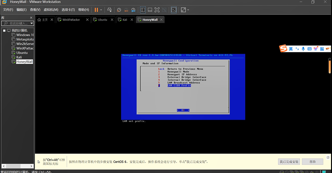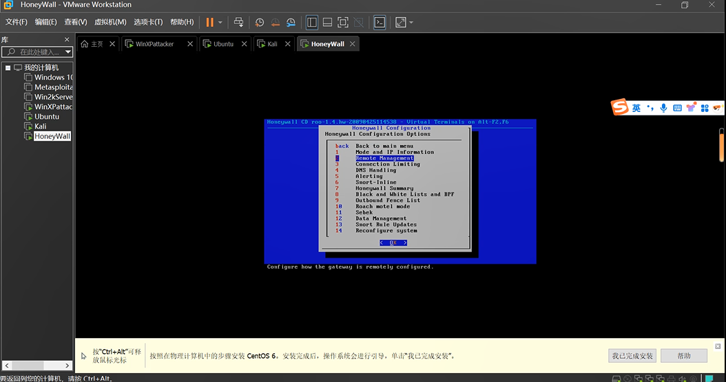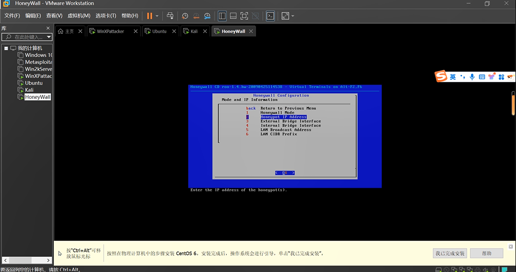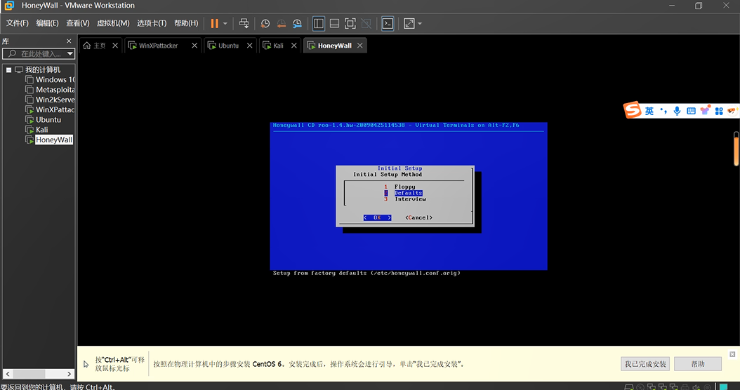 为了方便,我们直接把虚拟机命名为HoneyWall,保存好