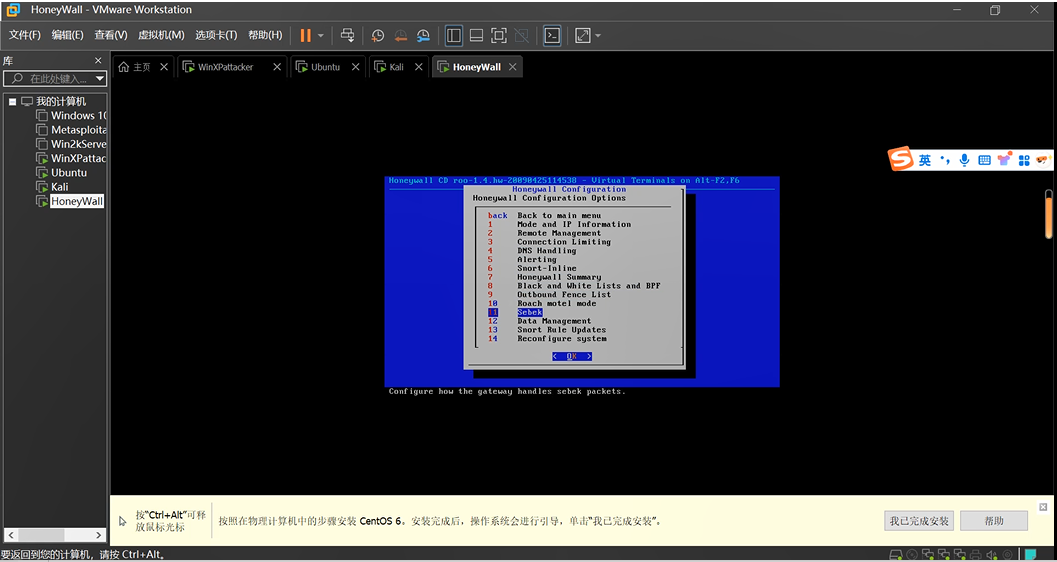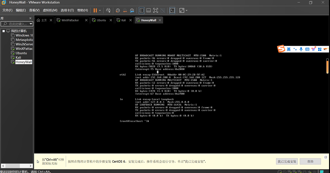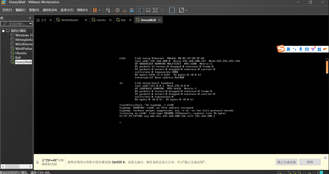 并且在HoneyWall上看到有ICMP数据包来源,表示我们网络攻防环境完成了!