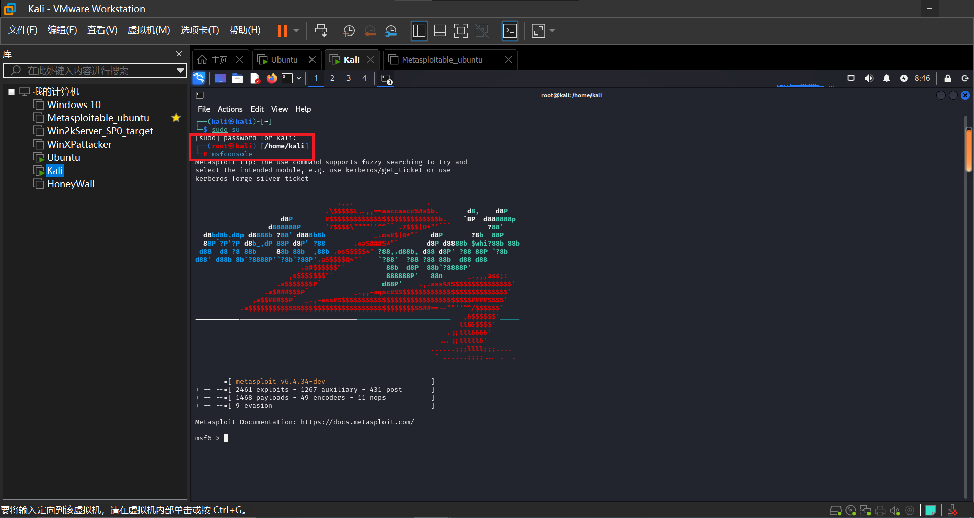 首先打开kali输入命令行'msfconsole'进入启动msfconsole