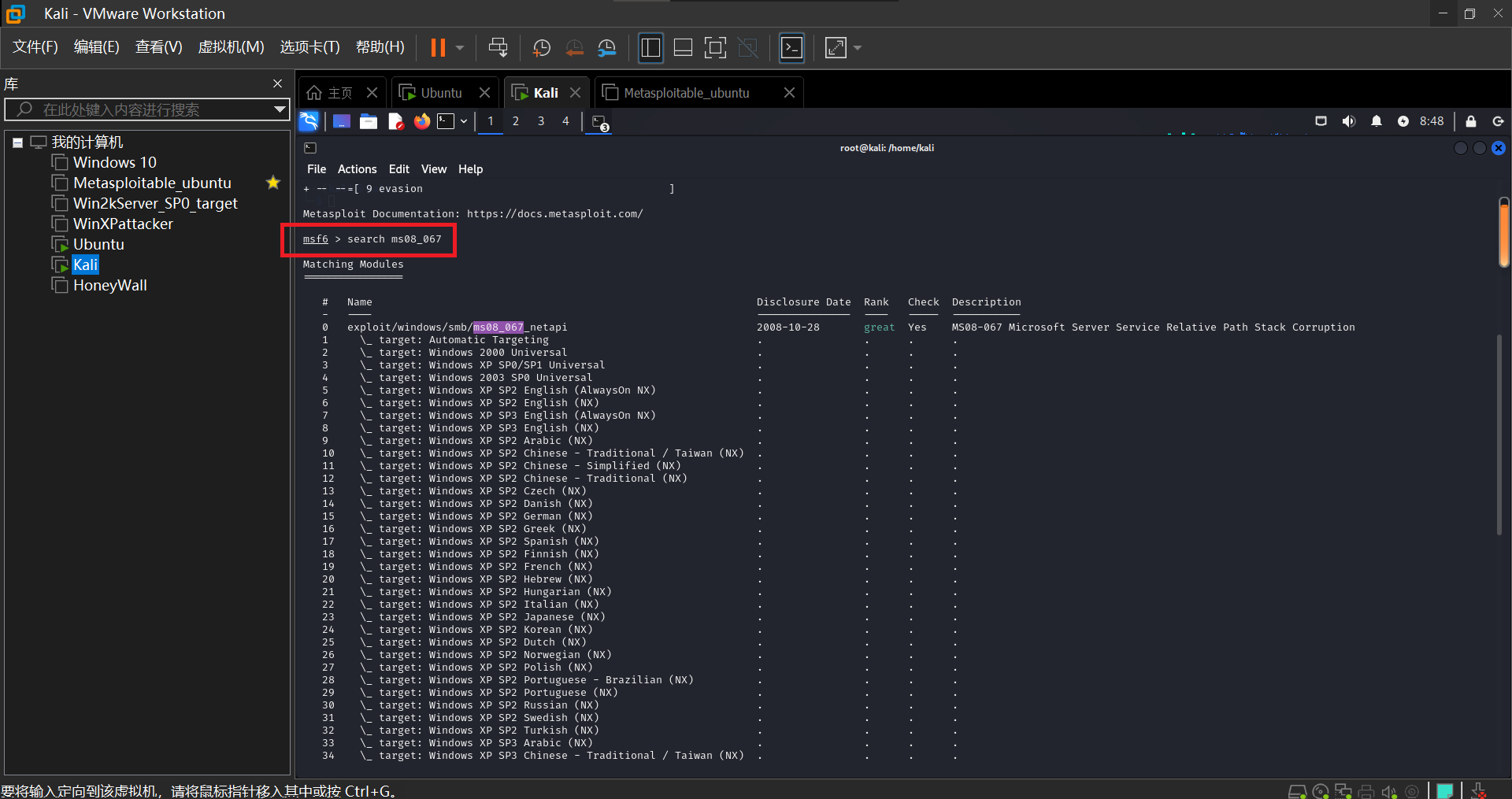 输入'search ms08_067'查看漏洞信息