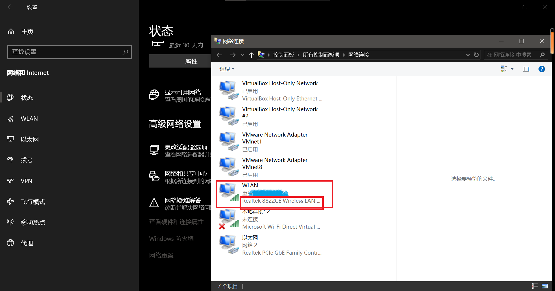- 问题1解决方案:咨询AI之后发现,虽然同伴的网卡选项是intel wireless-Ac 9560 160MHz。打开宿主机(我的宿主机是Windows系统)的设置里面的“网络和Internet”选择更改适配器